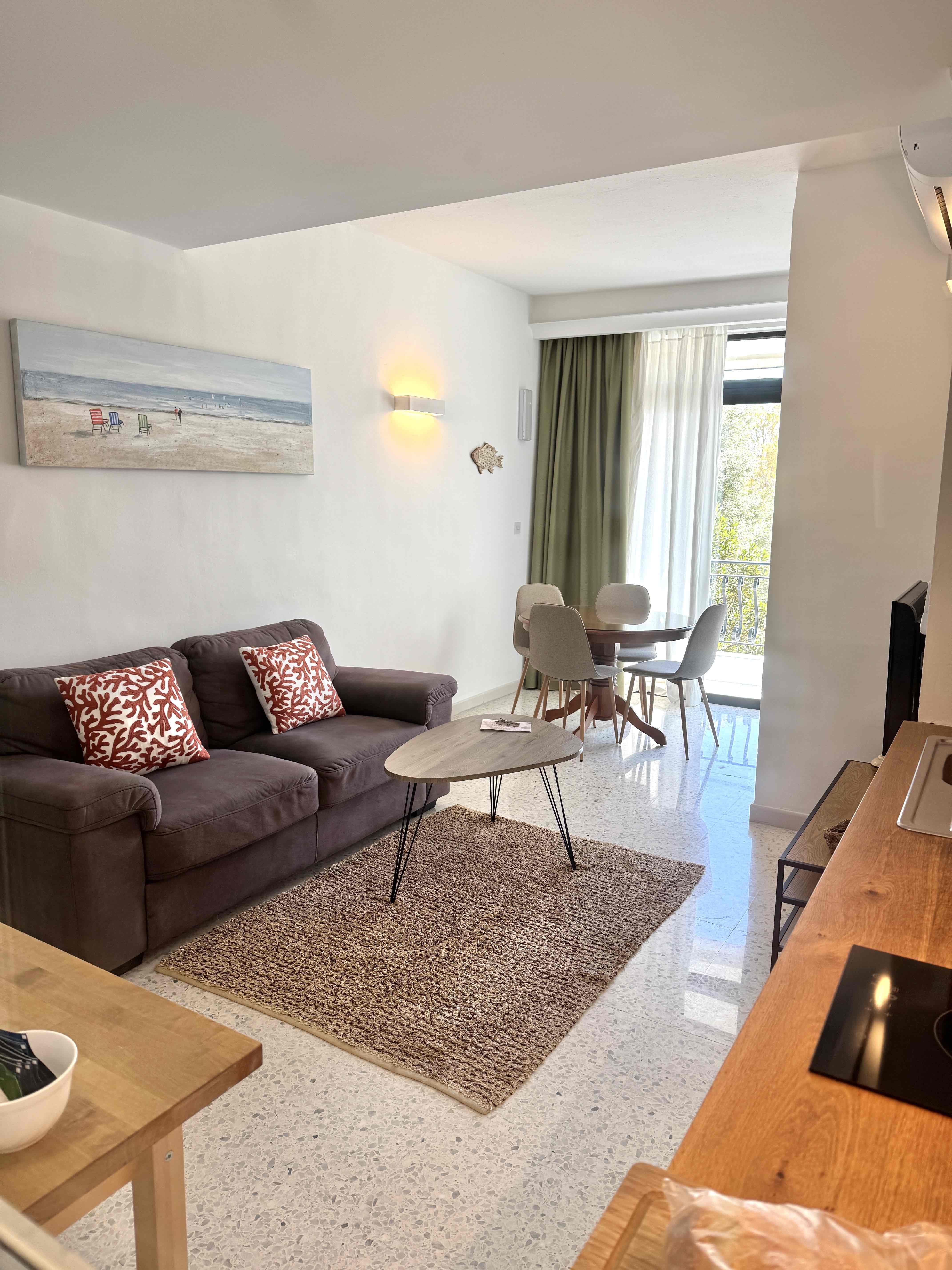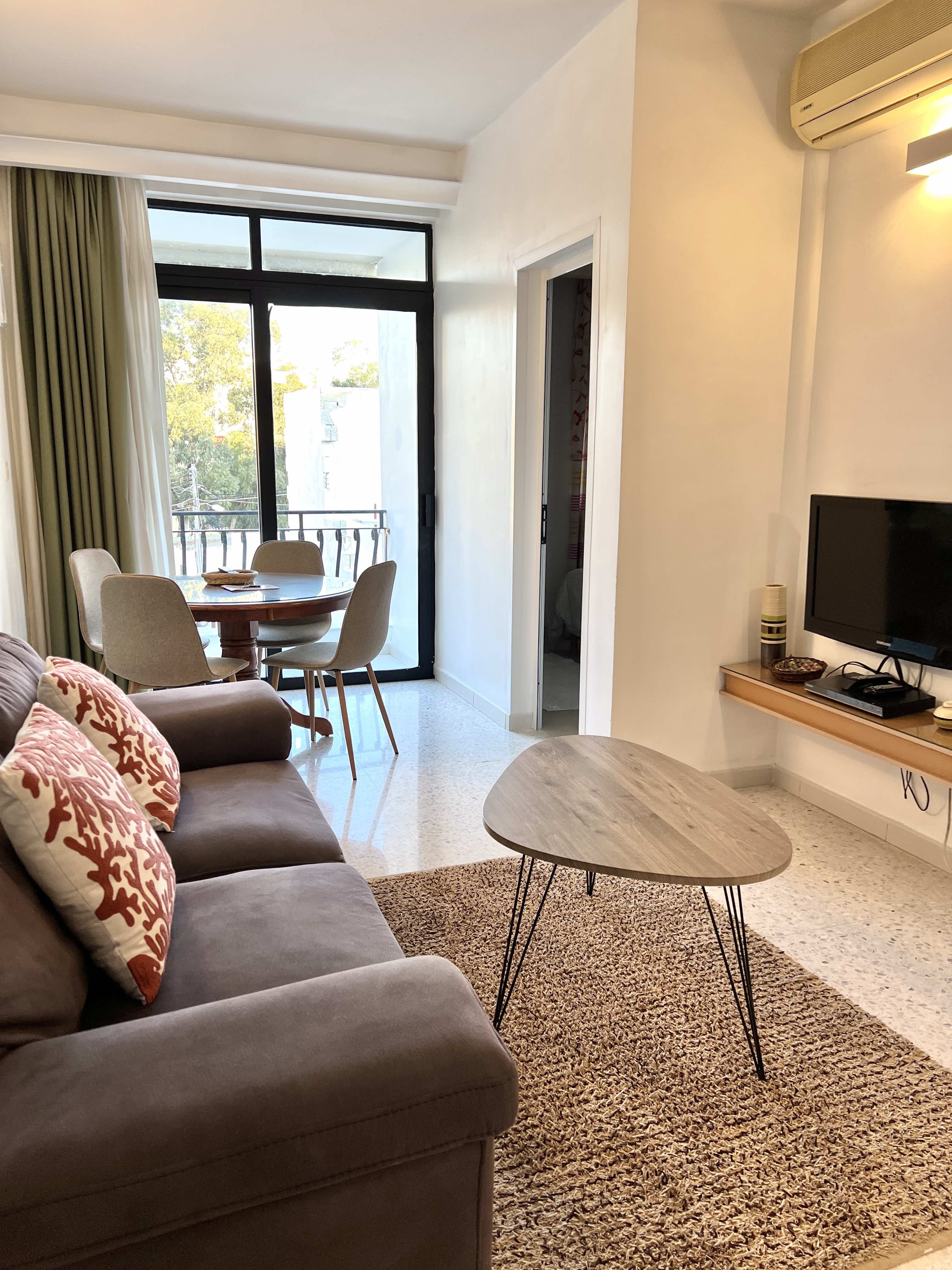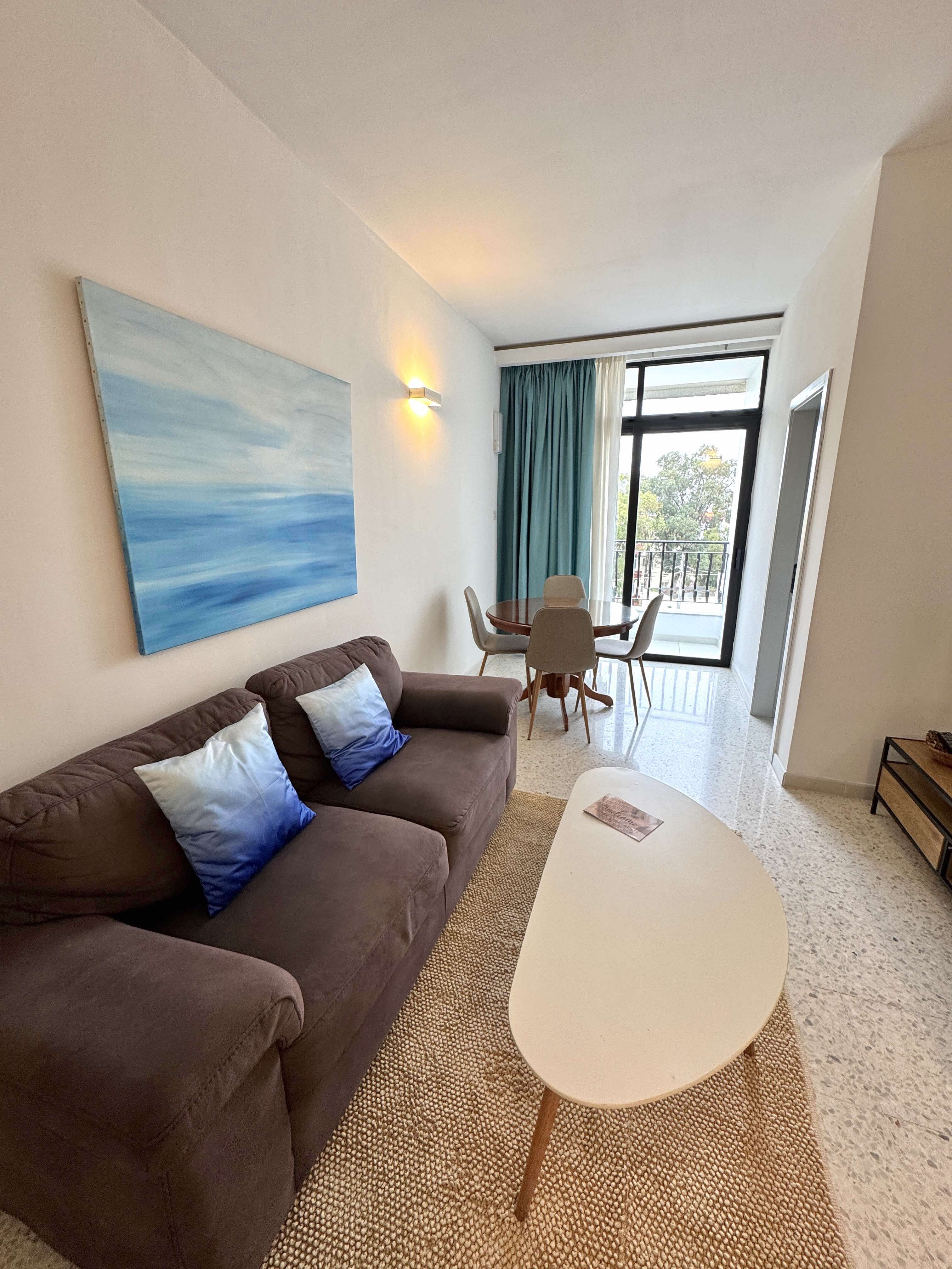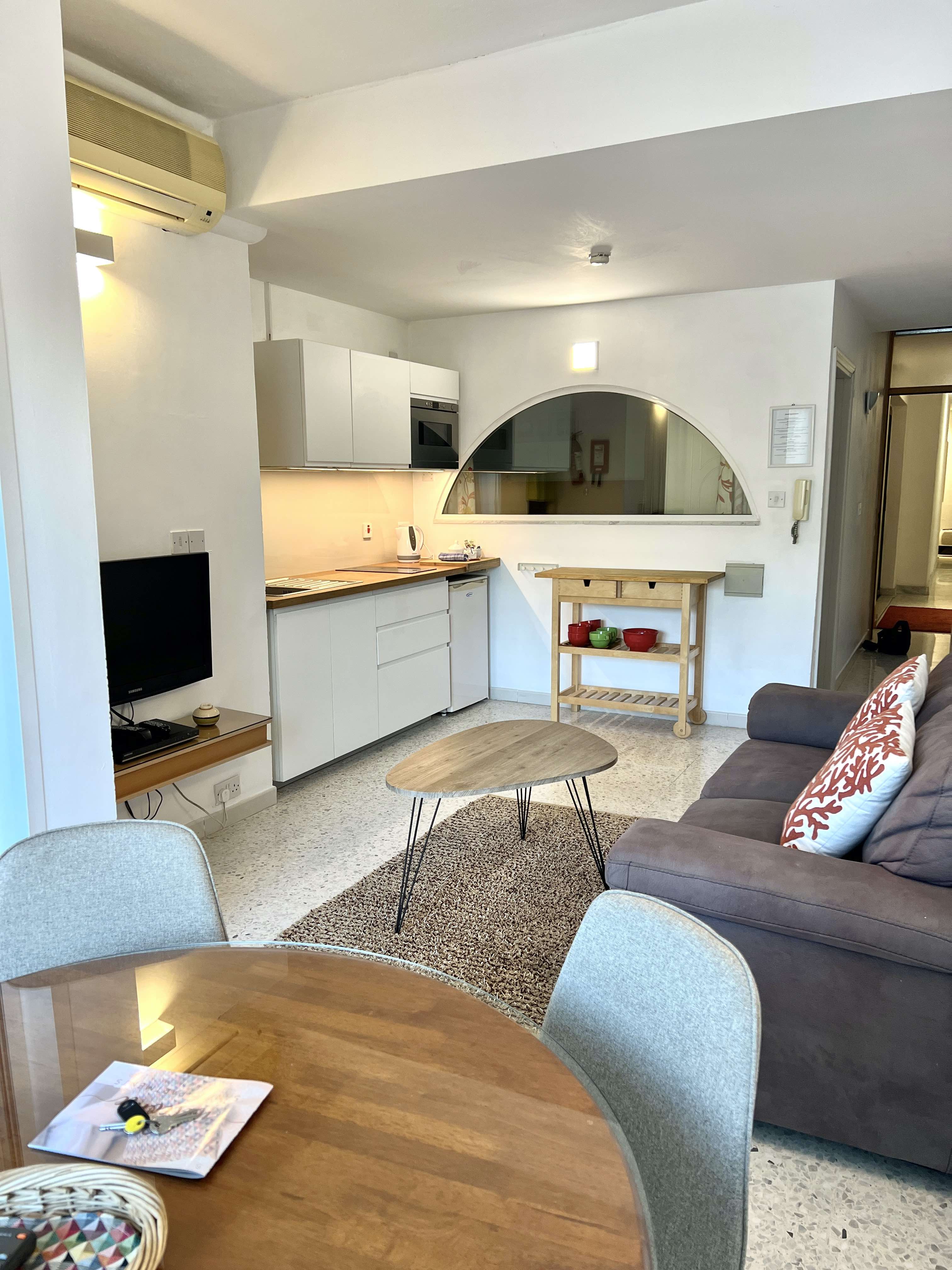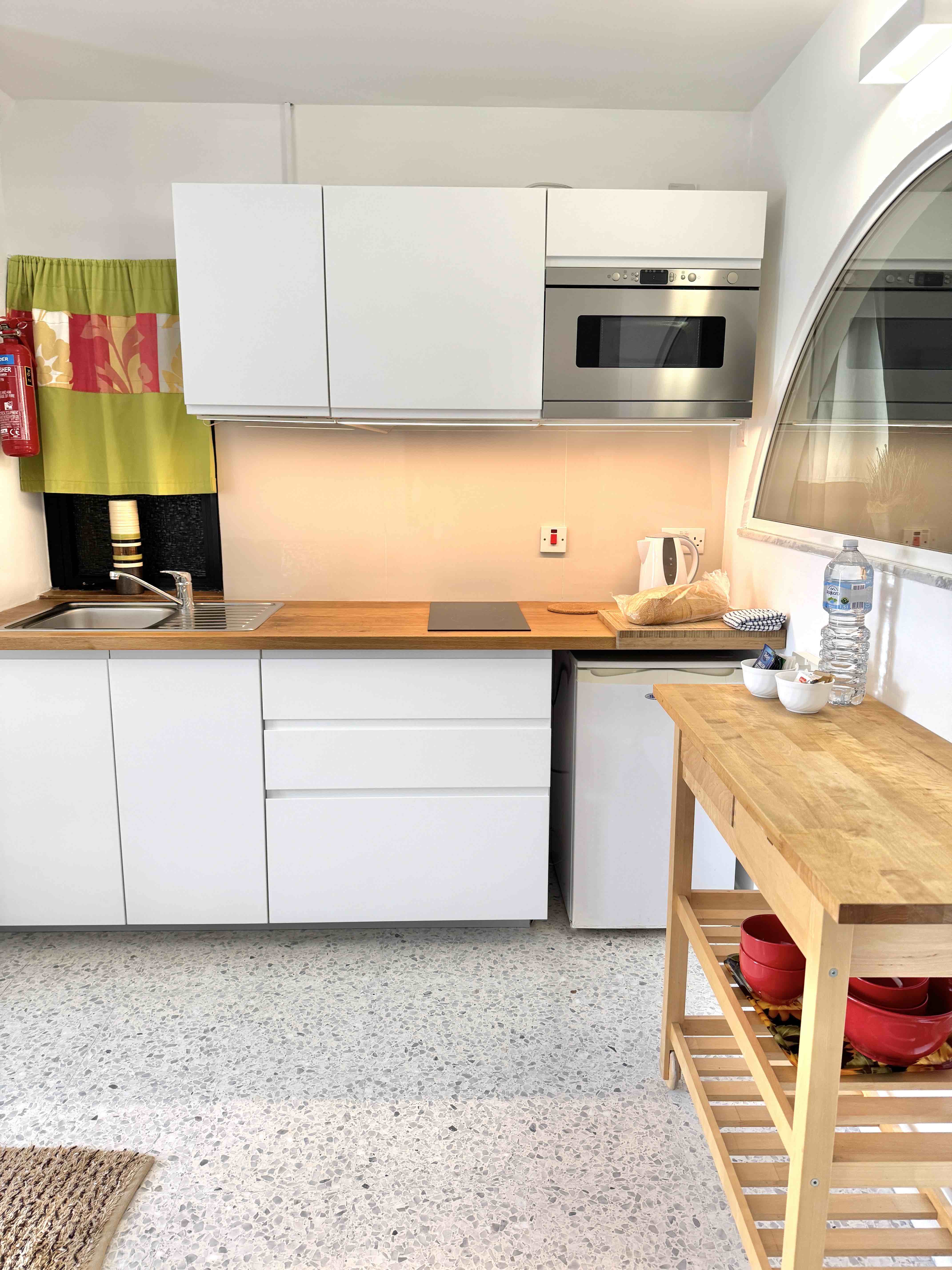 This apartment has a small kitchen / living area, which leads out on to its own small balcony.
