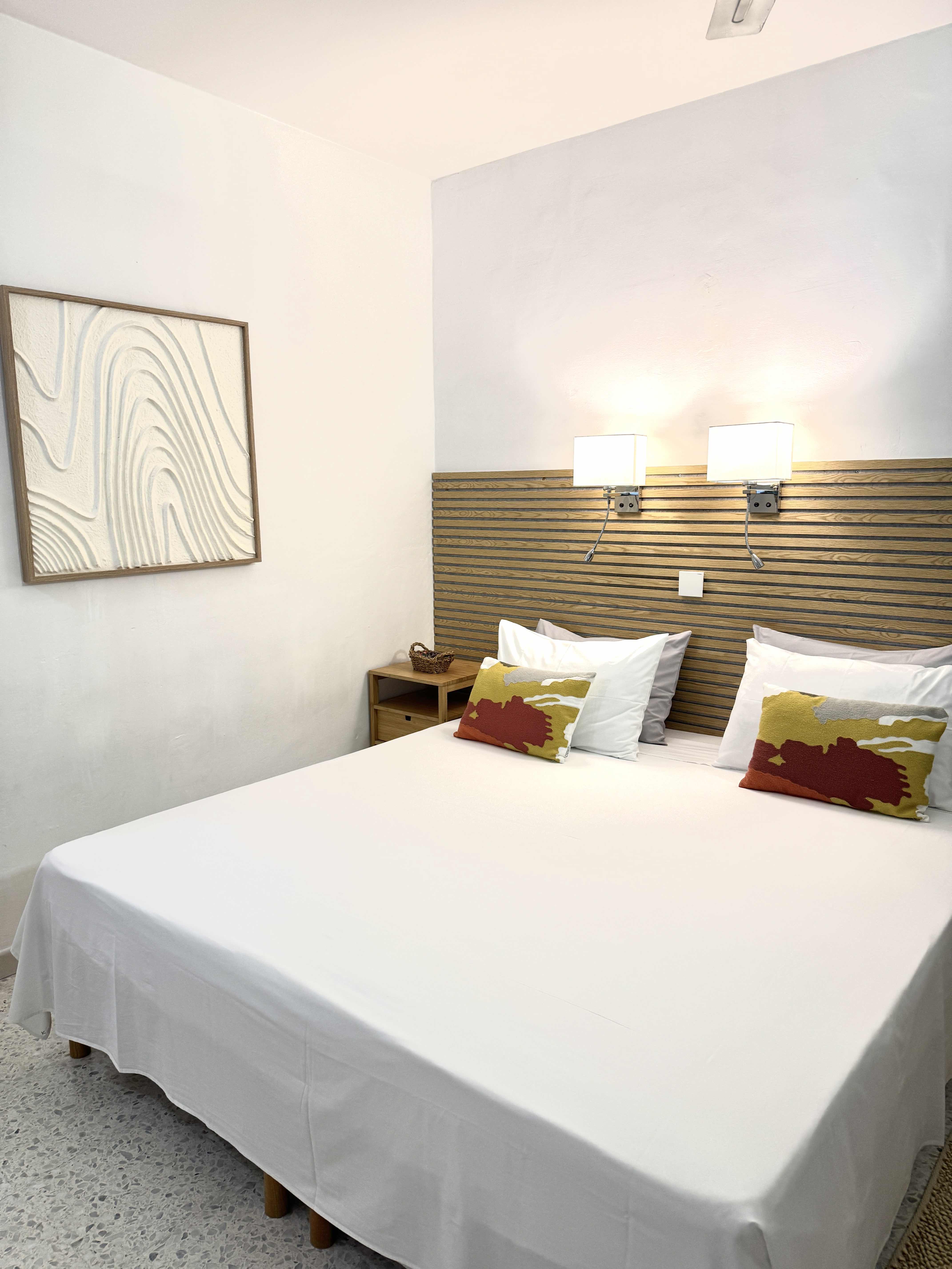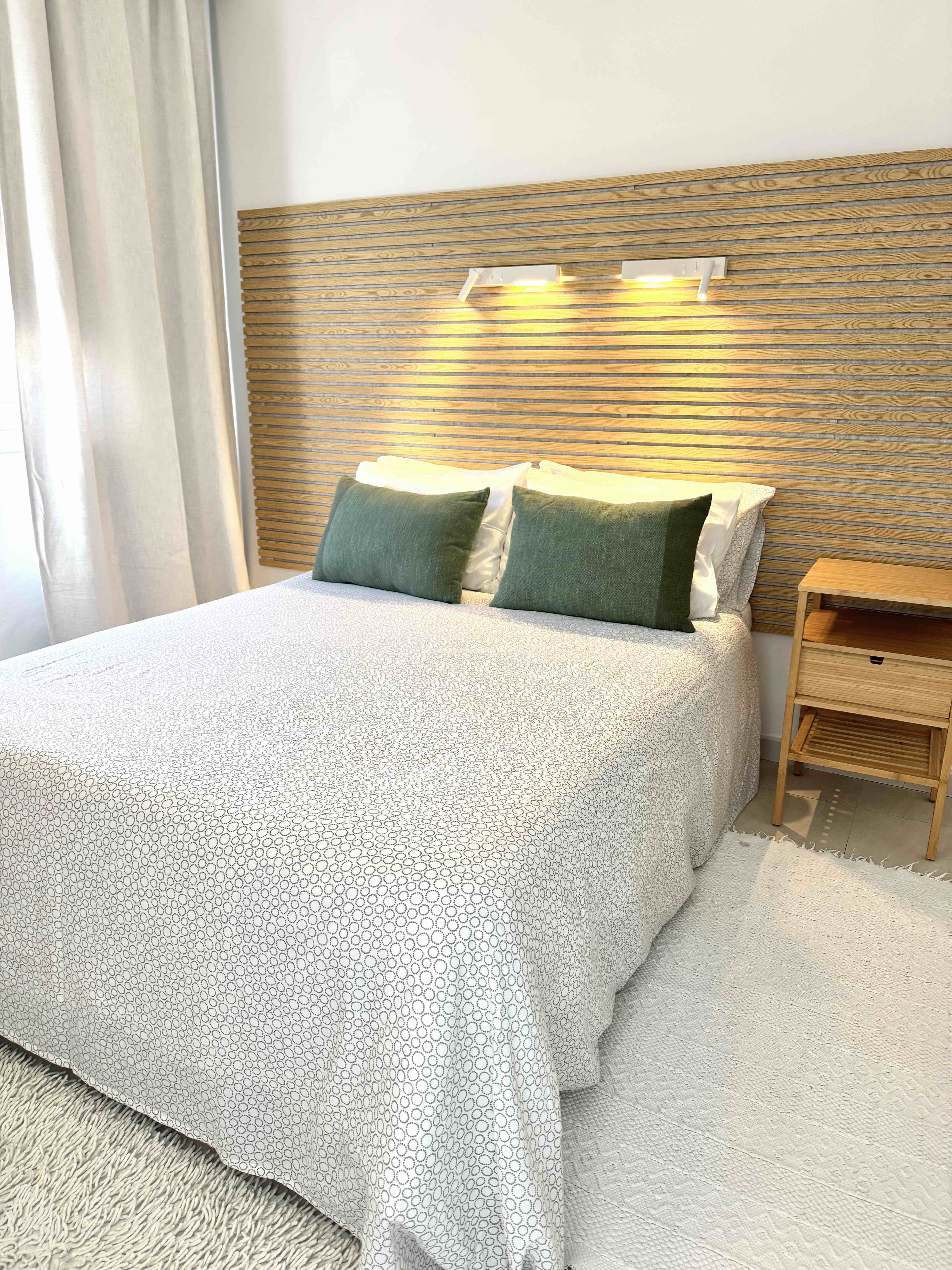 One bedroom has a double bed while the second bedroom can be set up with 2 twin beds or one large double bed .